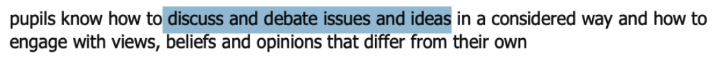 While the framework covers everything that inspectors will be looking for during visits, within the guidance there are some key criteria that relate to debate, oracy, British Values and citizenship.