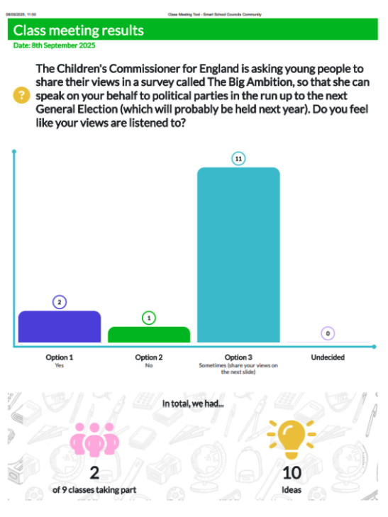 And when you use our Class Meeting Tool, the notes from these sessions are saved and presented in an easily accessible PDF format, ready to share across your setting or as evidence for your work.